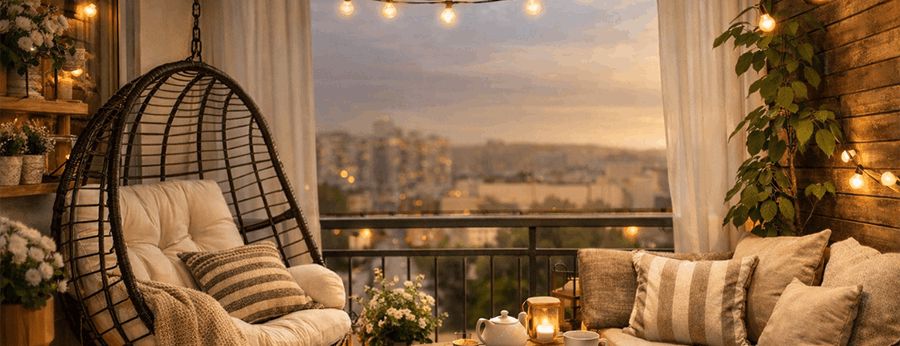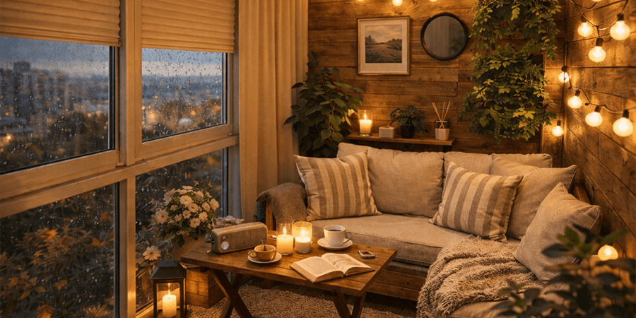 Что создаёт атмосферу уюта при оформлении балкона под лаунж-зону