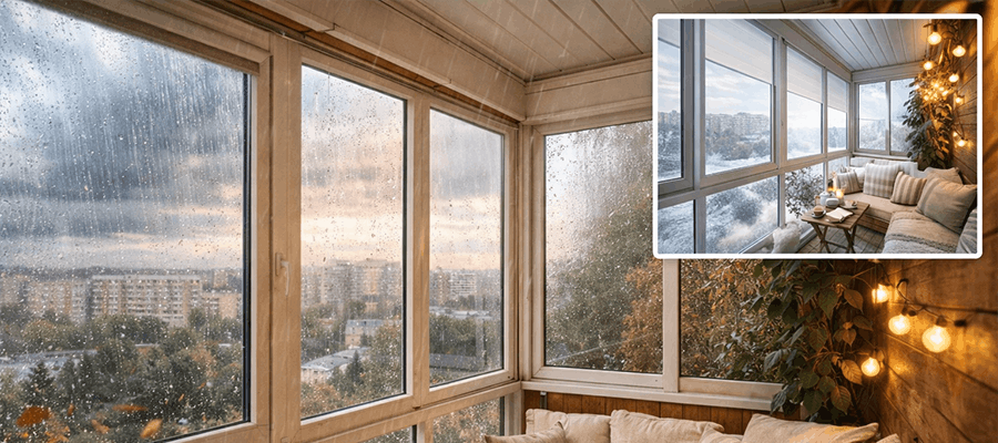 - Сохранение тепла и экономия отопления (для тёплого остекления). Многокамерные стеклопакеты и утепление стен уменьшает теплопотери и снижает затраты на обогрев квартиры в холода.