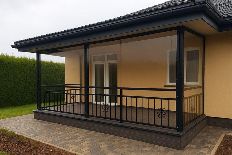 - Стандарт (600–750 мкм): Наиболее популярный и универсальный вариант для всесезонной эксплуатации на верандах и террасах. Эта толщина обеспечивает оптимальное сочетание цены, прочности и сопротивляемости ветру.