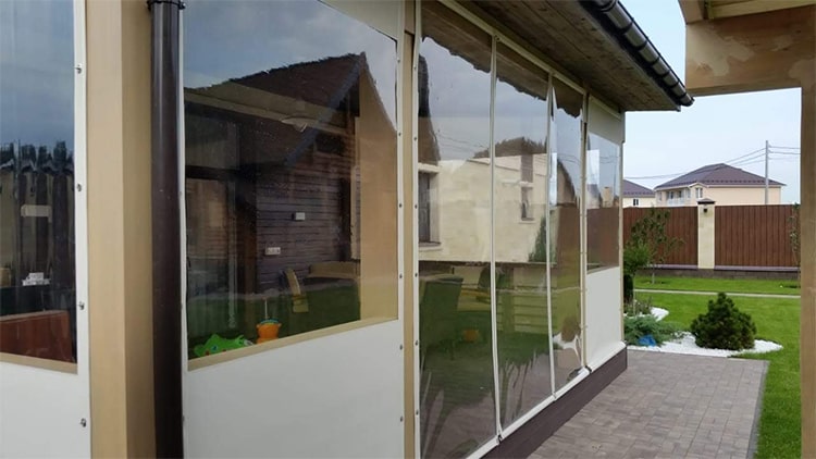 В сезон холодов «мягкие окна» создают воздушную прослойку, которая слегка утепляет веранду и защищает её от снега и наледи. Главное — следить, чтобы наледь и снег не создали избыточной нагрузки на полотно.