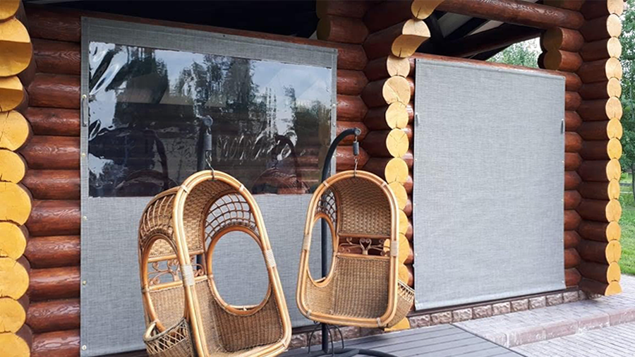 Вот так смотрится комбинированная версия защитные шторы + мягкие окна: