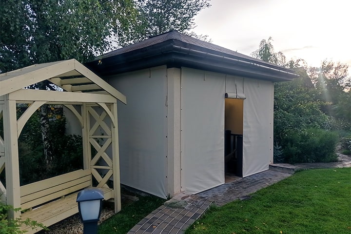 В отличие от поликарбоната, защитные шторы для беседок, веранд и террас не шумят во время дождя и создают более комфортный микроклимат внутри беседки.
