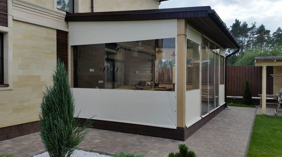 Но с ними есть проблема парникового эффекта, поэтому порой отдают предпочтение защитным шторам из скрин-полотна.